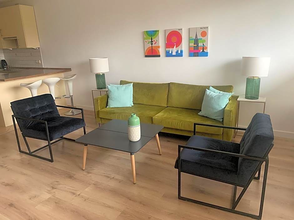The suite is extra spacious and offers a separate seating area with a sofa.
